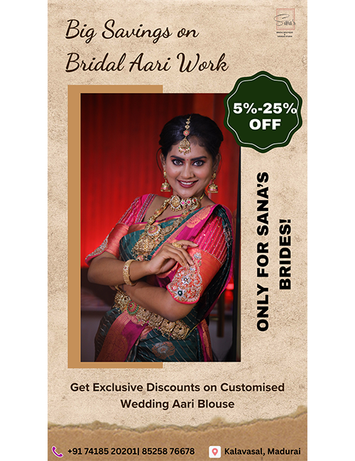 Since 2019, Sanaβs Bridal Boutique and Beauty Salon has been devoted to making every woman feel beautiful and confident. Whether you're preparing for your wedding day or enjoying a pampering session, we offer personalized services. Our expert bridal makeup artist in Madurai creates flawless, long-lasting bridal looks. The studio also provides stunning mehendi designs, stylish nail art, and comprehensive beauty care. As a trusted beauty parlour, we focus on quality, comfort, and customer satisfaction. We offer professional groom makeup in Madurai for a perfect couple makeover. Inside our boutique, youβll find rental costumes, dresses, and jewelry to complete any look. Recognized as one of the best boutiques in Madurai, we offer unique designs for every bride. Plus, our Beauty Academy provides expert training in makeup and beauty techniques.